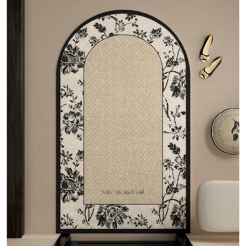シンプルで高級感のあるシルクサークルフロアマット、アンティークスタイルのホームエントランスマット、玄関ドアの足拭き除塵PVCドアマット