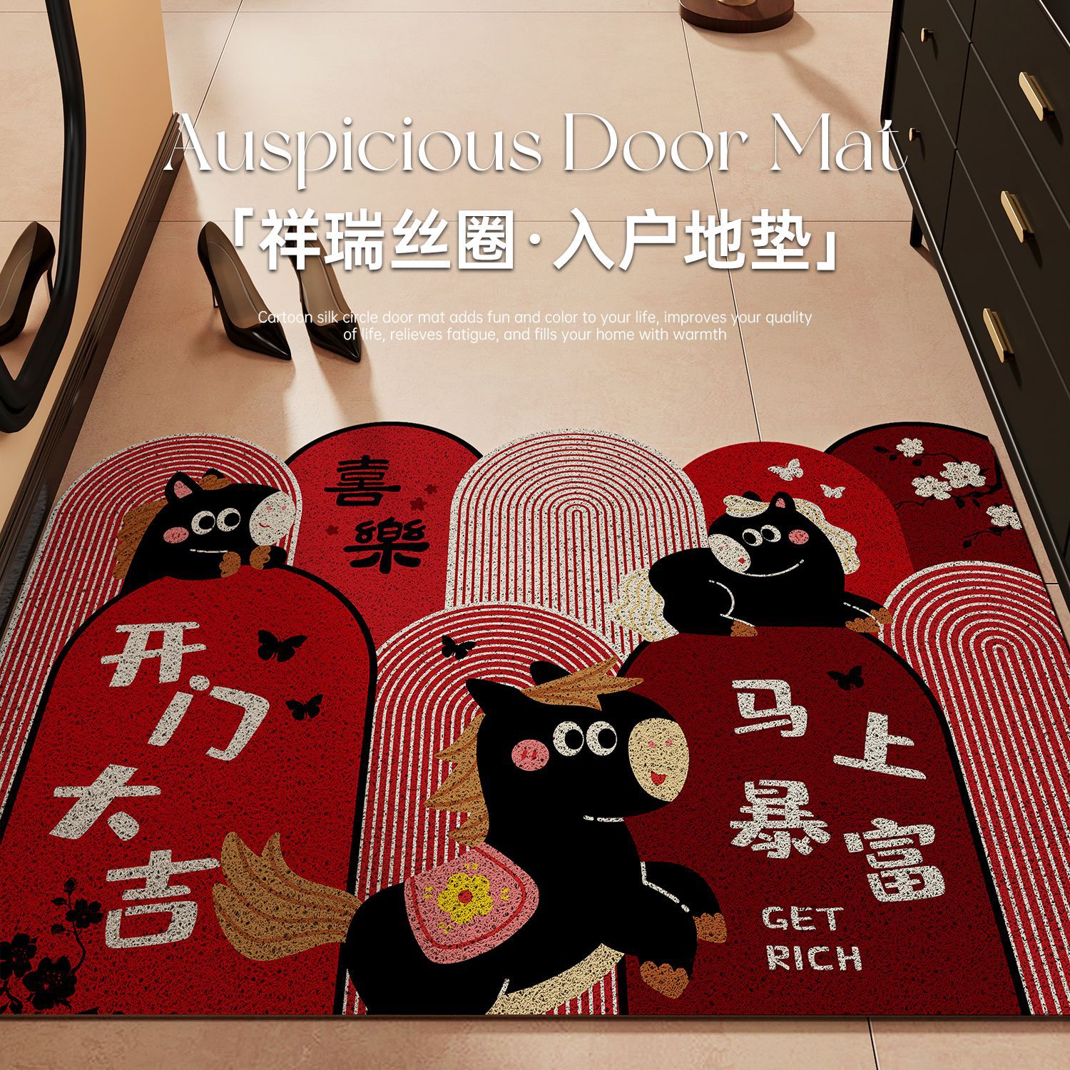 马年入户门地垫家用耐磨可裁剪丝圈脚垫子玄关除尘蹭土地垫防滑垫