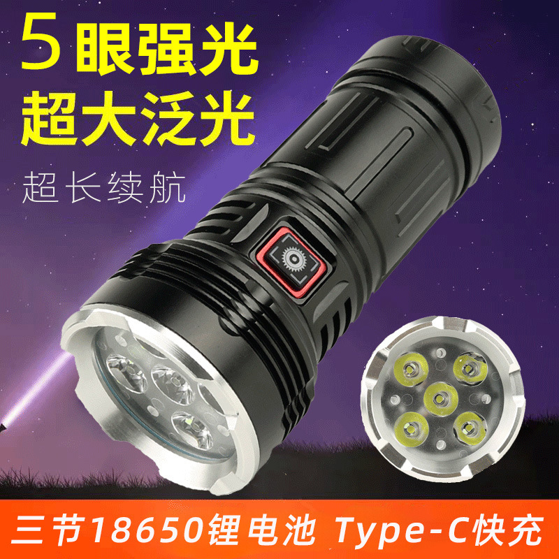2024 新しい 5LED 5 ライト強力な光懐中電灯充電式アルミ合金ハイパワー投光器長いバッテリー寿命小型鋼大砲
