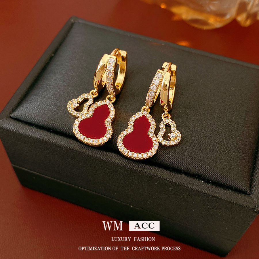 真金电镀锆石葫芦镂空耳扣新中式精致百搭耳环轻奢高级感耳饰批发