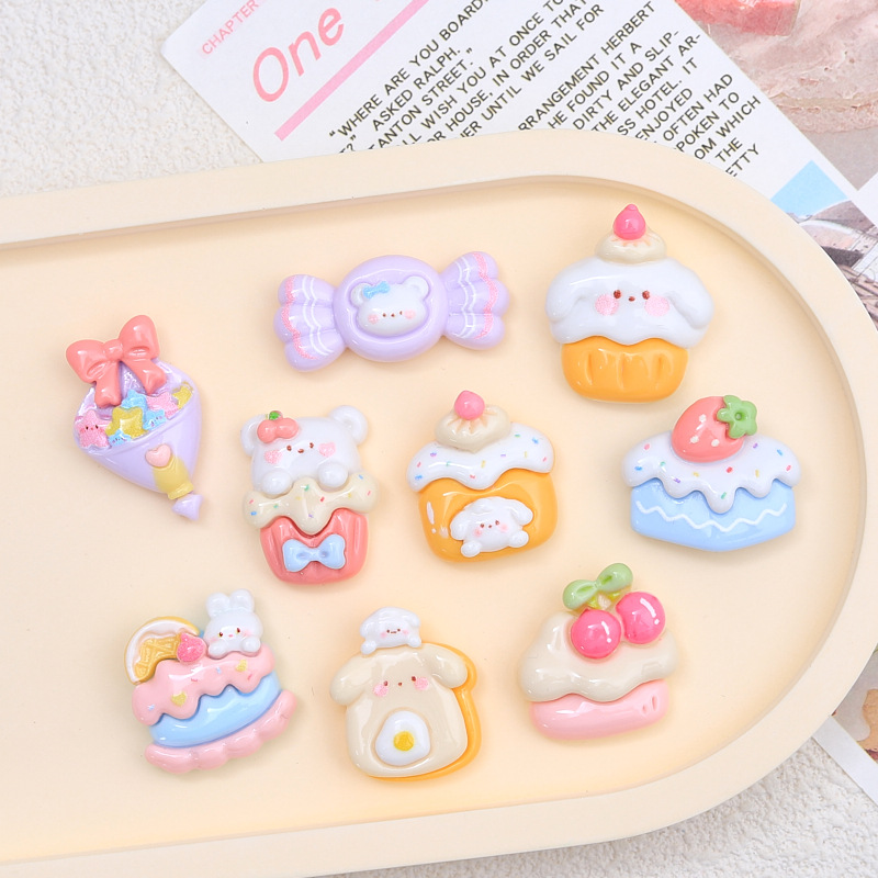 樹脂部品卸売りクリームゴムヘアピン手作りdiy洞靴ボタンアクセサリーアニメカラーキャンディー食遊び