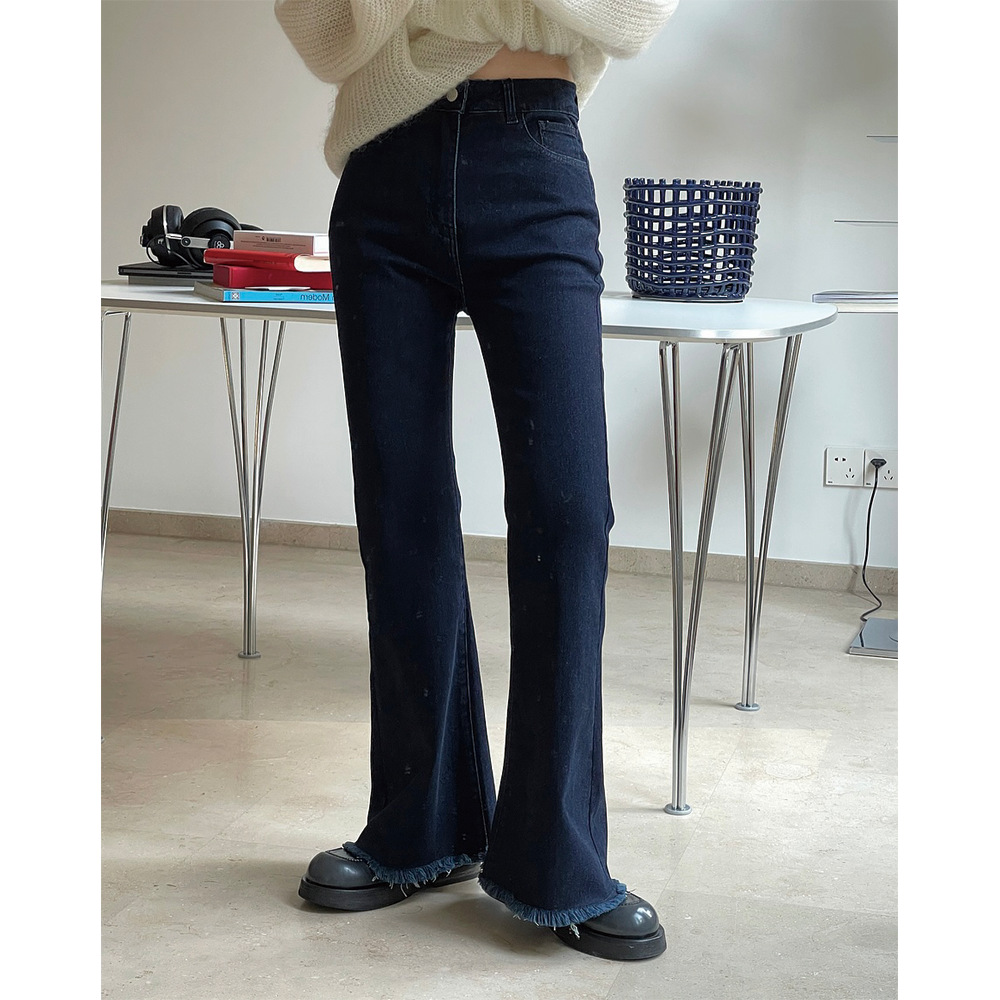 盧浮秋の新型パリ流行通勤高腰微ラッパジーパンのスリムなカジュアルズボンの女性
