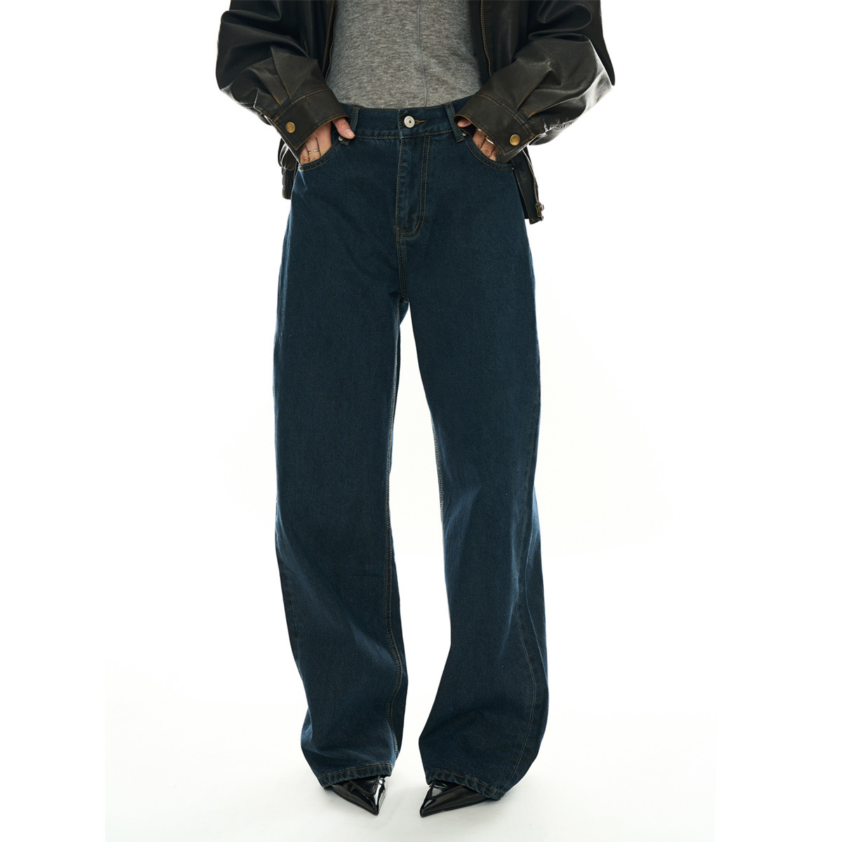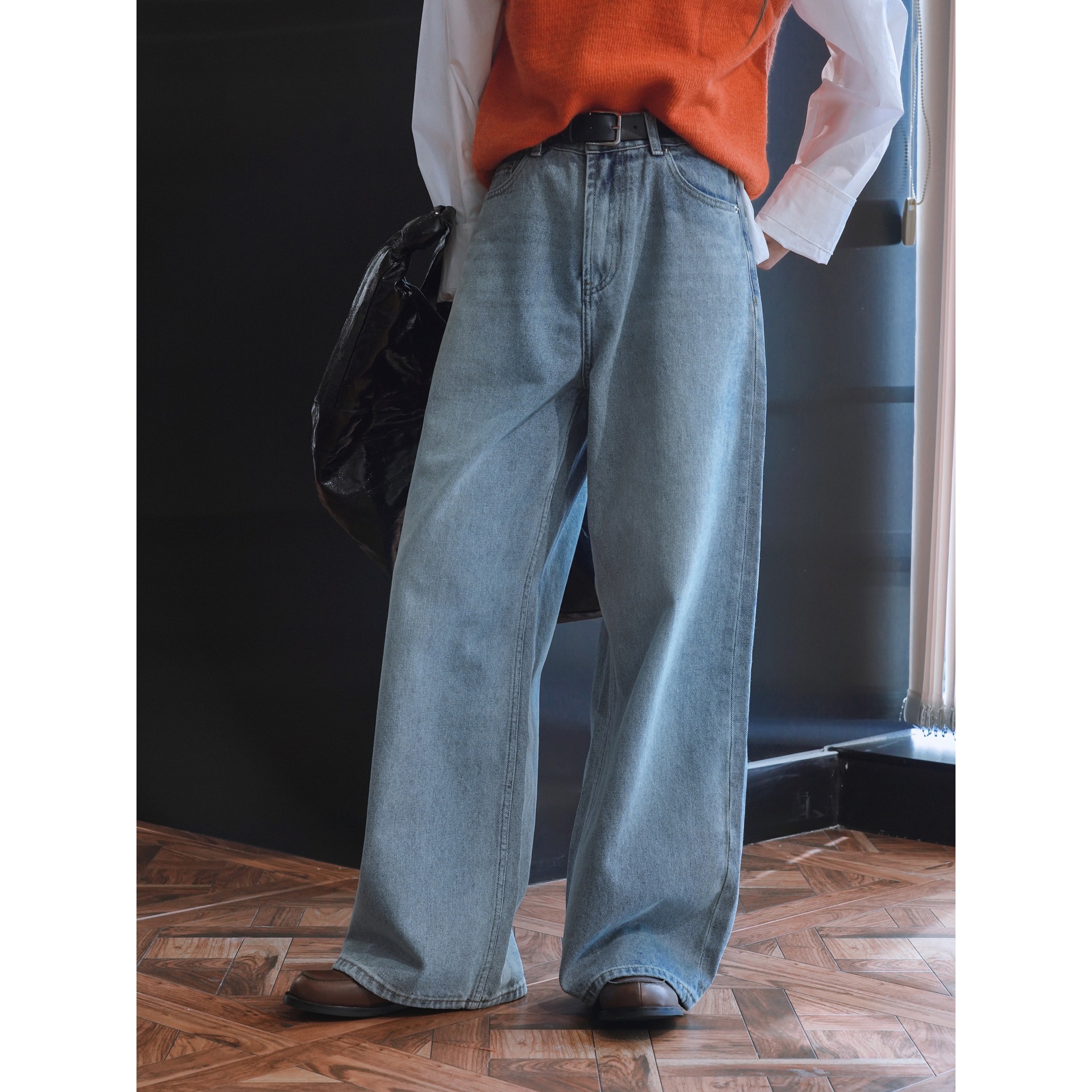 盧浮冬の新型韓国版レトロモダン深藍ストレートジーンズが痩せています。