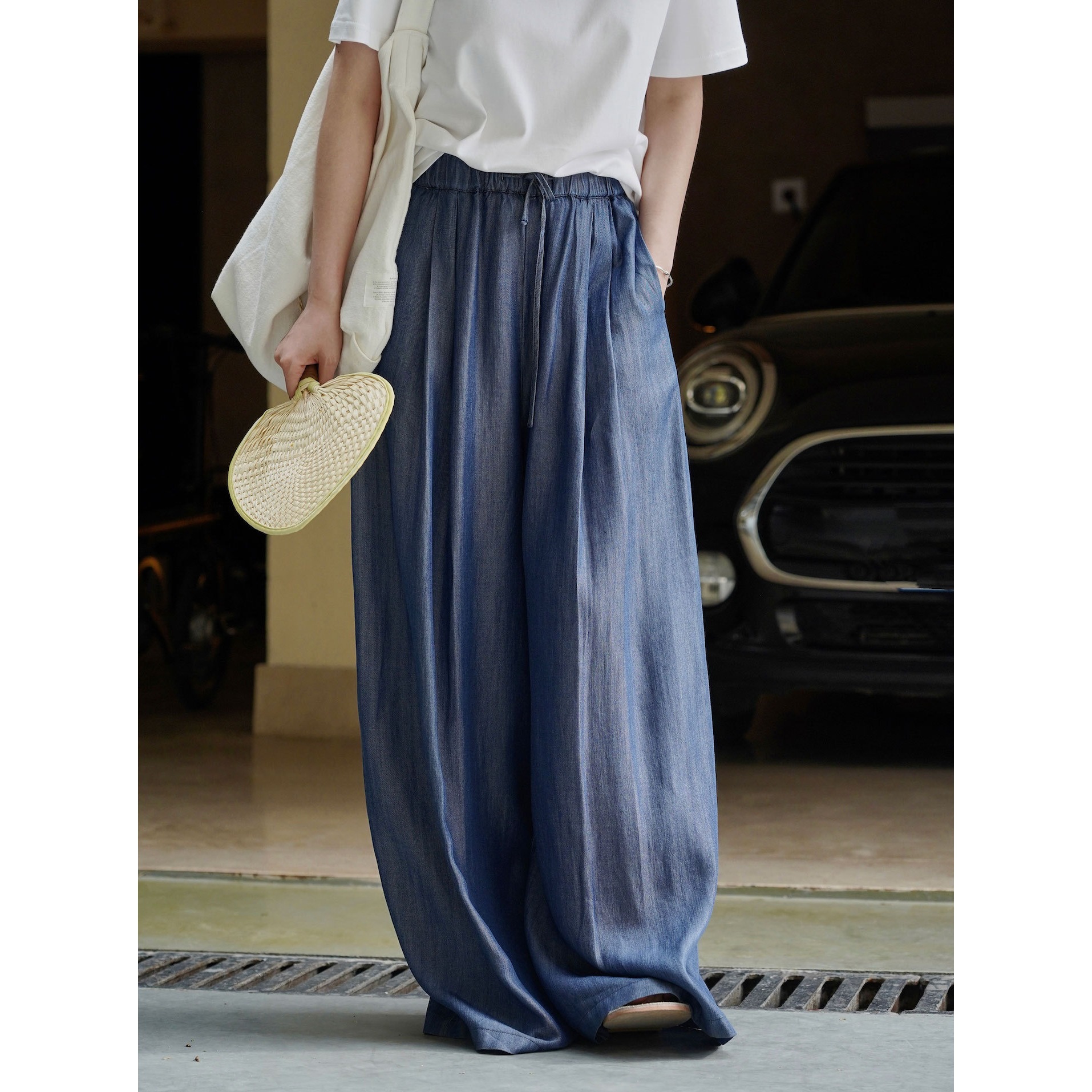 夏の新韓版はシンプルで爽やかなハイウエストのストレートジーンズがゆったりしていて、やせています。