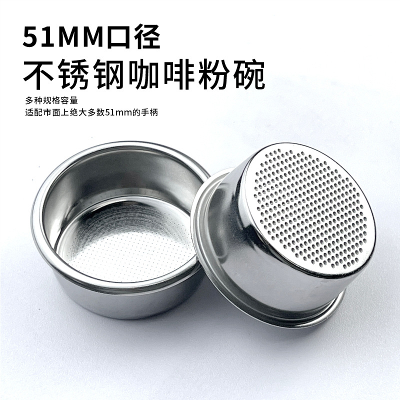 不锈钢51MM咖啡粉碗源头厂家粉槽过滤器双层粉碗51单双人份盲碗