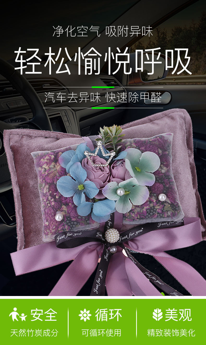 創意ドライフラワー女王竹炭包自動車香薫置物車載内飾品除臭ホルムアルデヒド車家両用