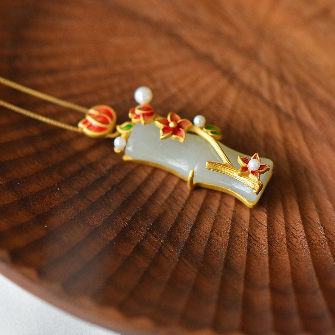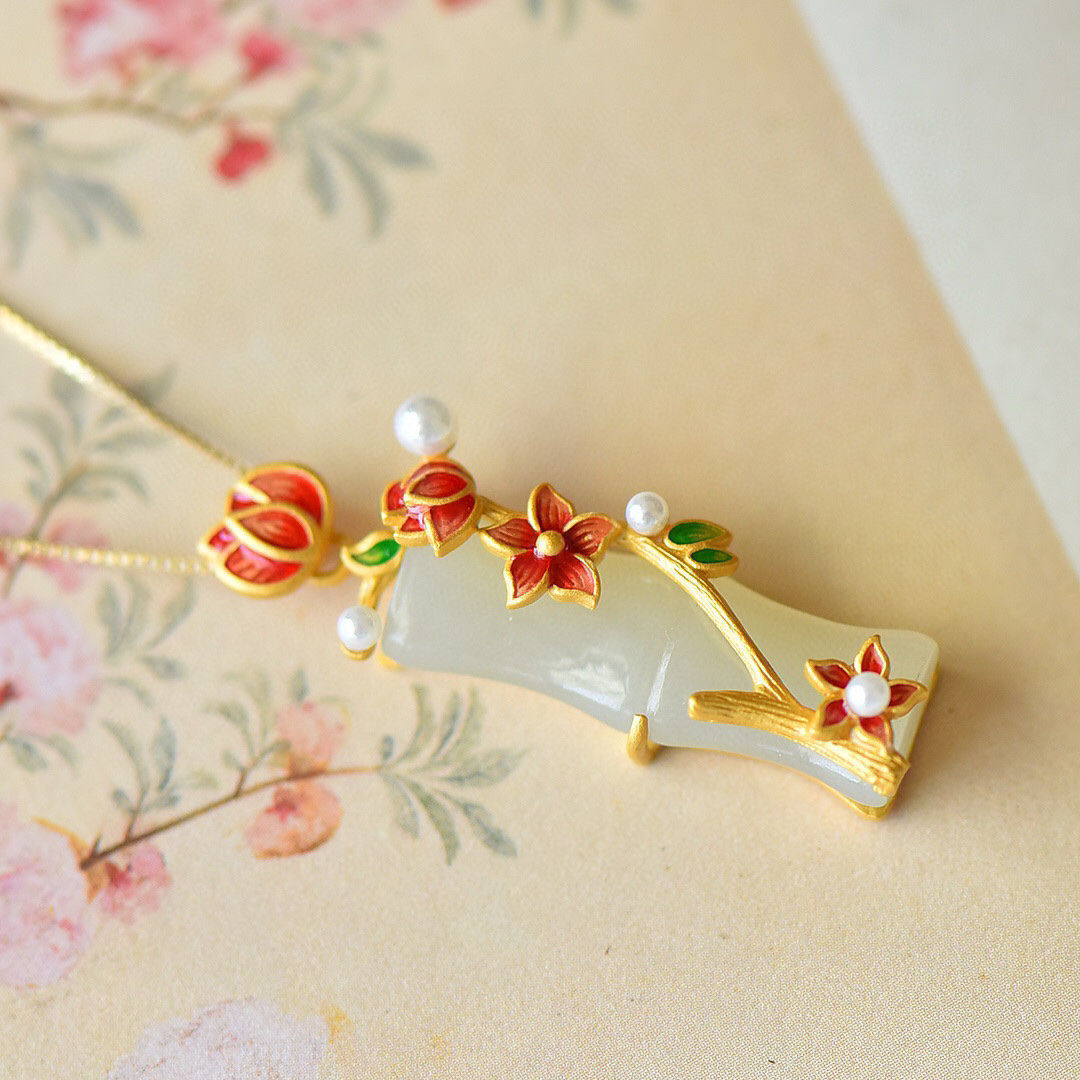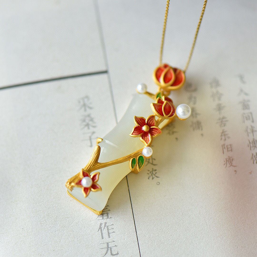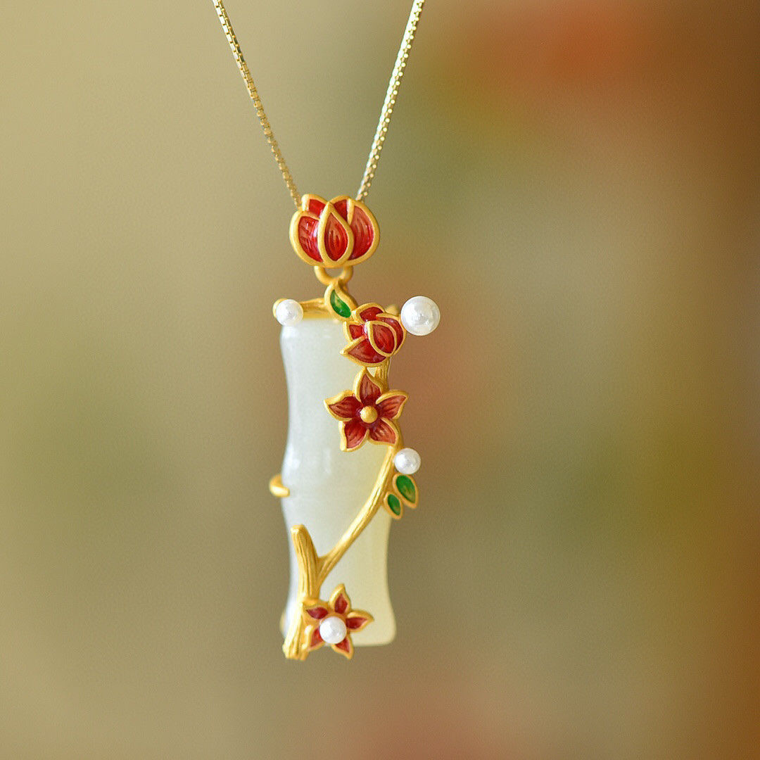 カラー 梅の花の竹の節のペンダント,梅の花の竹節のペンダント (40 + 5cmの金色のチェーンを配合します)