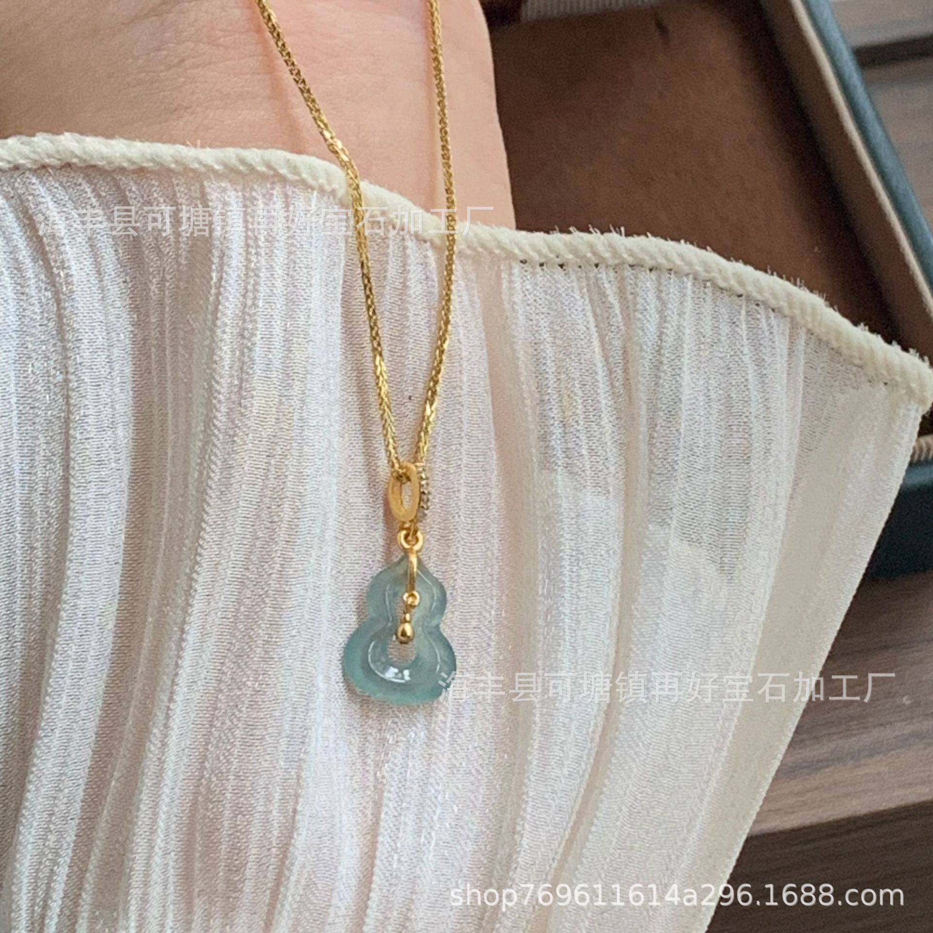 天然蓝水翡翠葫芦吊坠S925银镶嵌高冰新中式国风礼物女项链批发