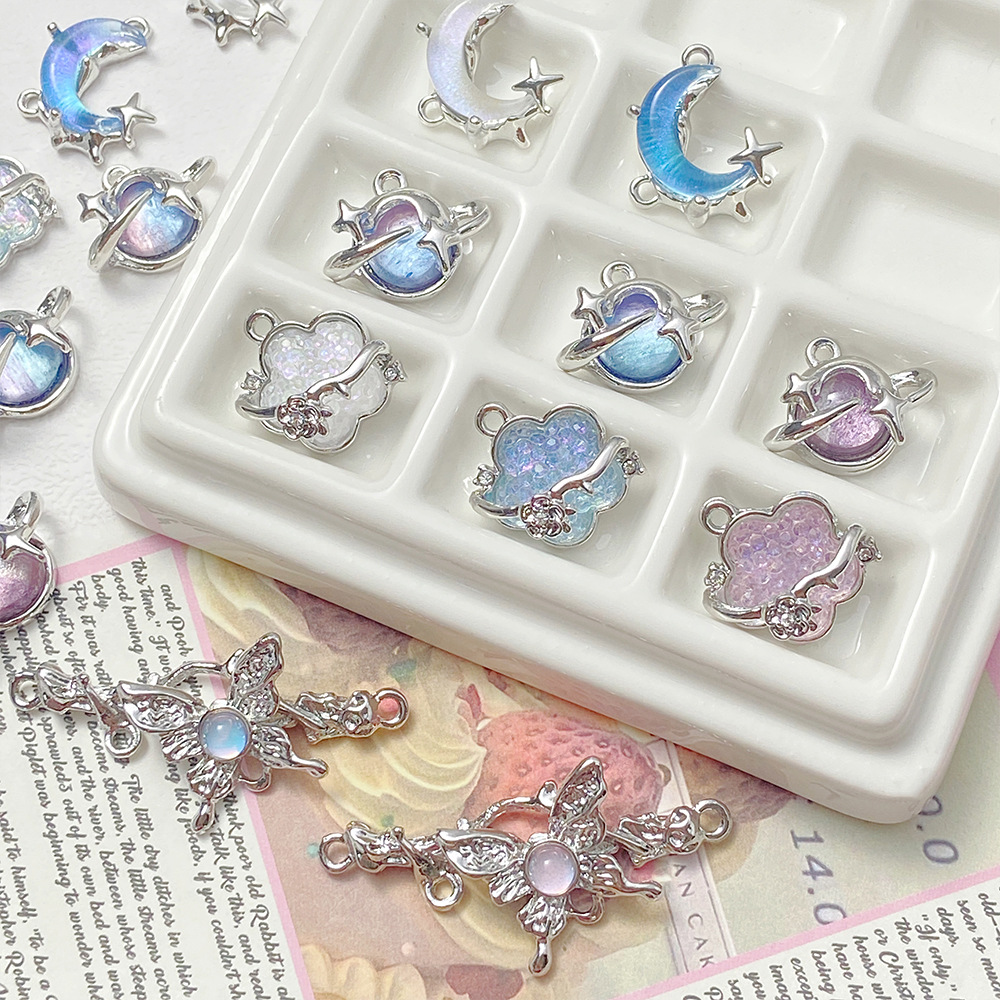 ダムシルバー合金insファンタジームーン蝶ビーズdiyアクセサリーブレスレットネックレス耳饰りビーズアクセサリー材料