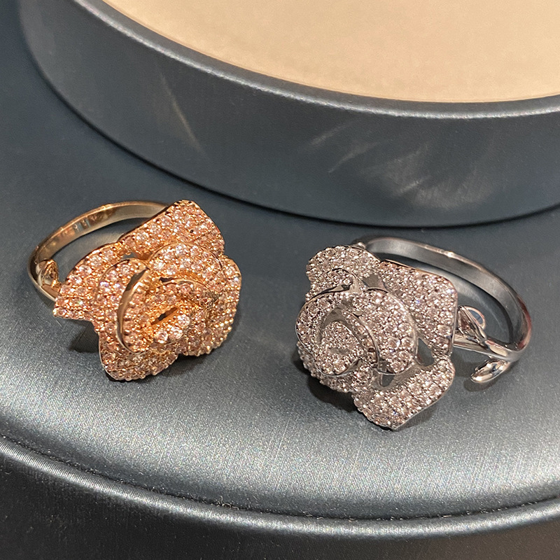立体のツバキの花はダイヤモンドの指輪の女性の人差し指の指輪の女性の潮人の復古の誇張のバラの花を詰めます。