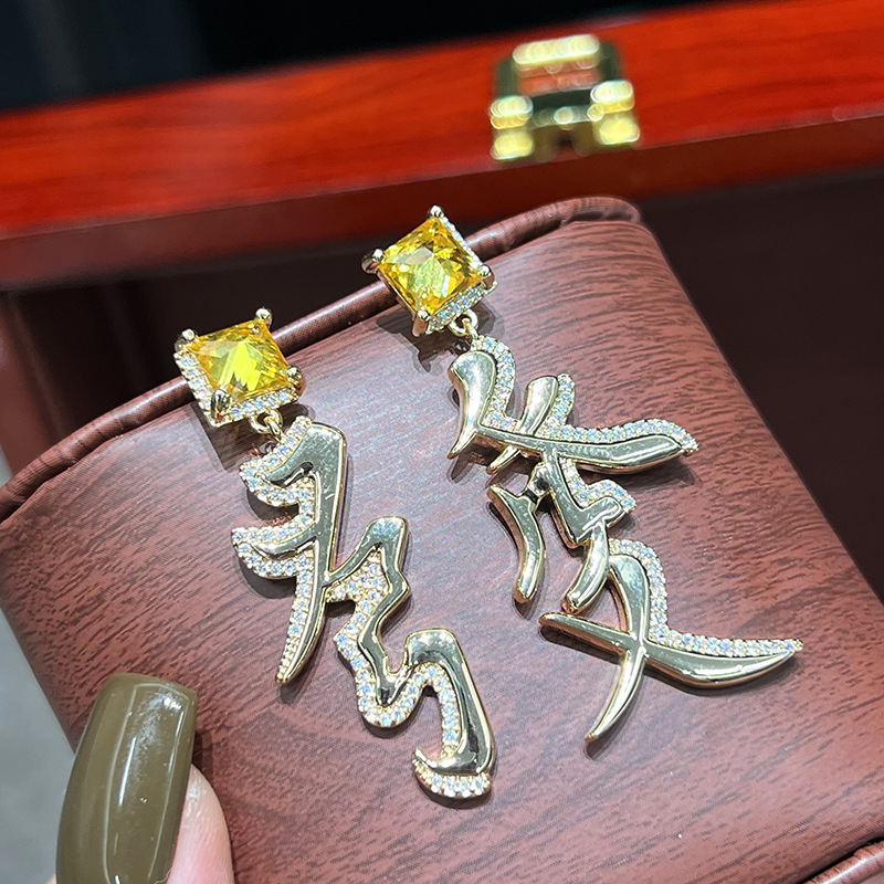 豪華なダイヤモンドは超閃黄水晶のひし形の大黄ドリルのピアスの気質の大きいジルコンの誇張する銀針のジルコンのイヤリングの女性です。