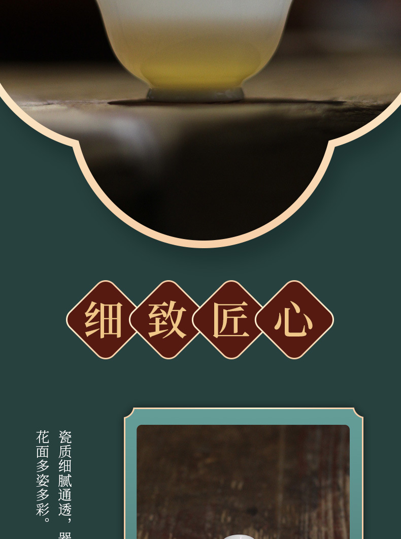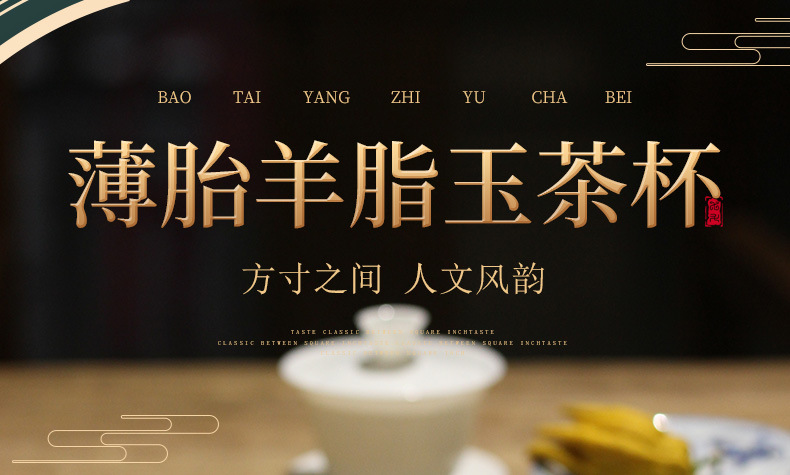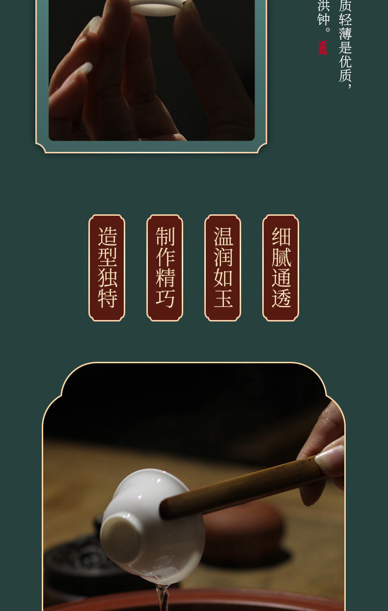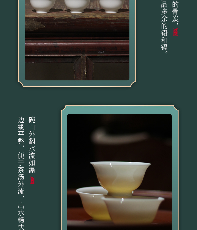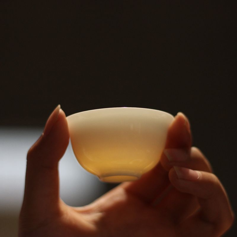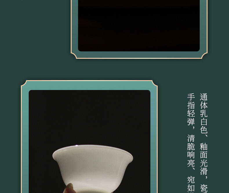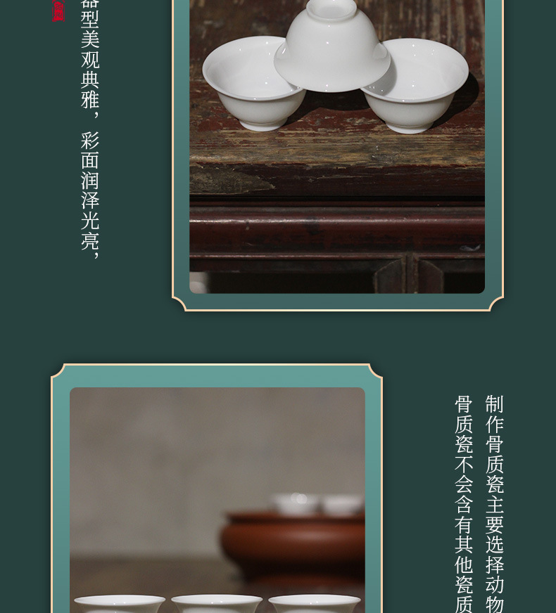 潮州カンフーティーセット逆口カップ三彩ボウルティーカップ薄型タイヤマトン脂肪翡翠ティーカップアイスシードセット
