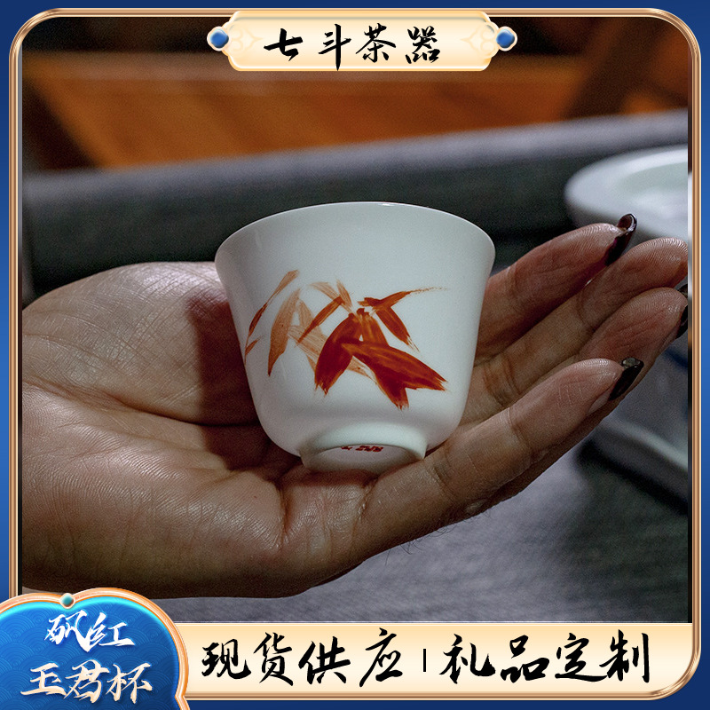 潮州楓渓純手描き紅竹葉主人杯品茗杯茶杯単独客杯中国式工夫茶杯