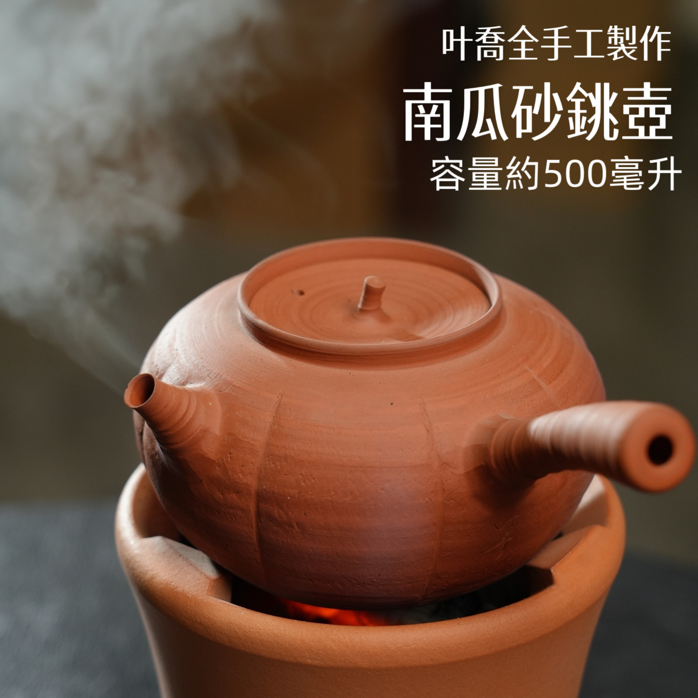 潮州手作り砂釜、火炉で煎茶を煮る工夫茶炭火釜、側取手付き煎茶釜、玉書碨、手作り鉱泥湯沸かし器