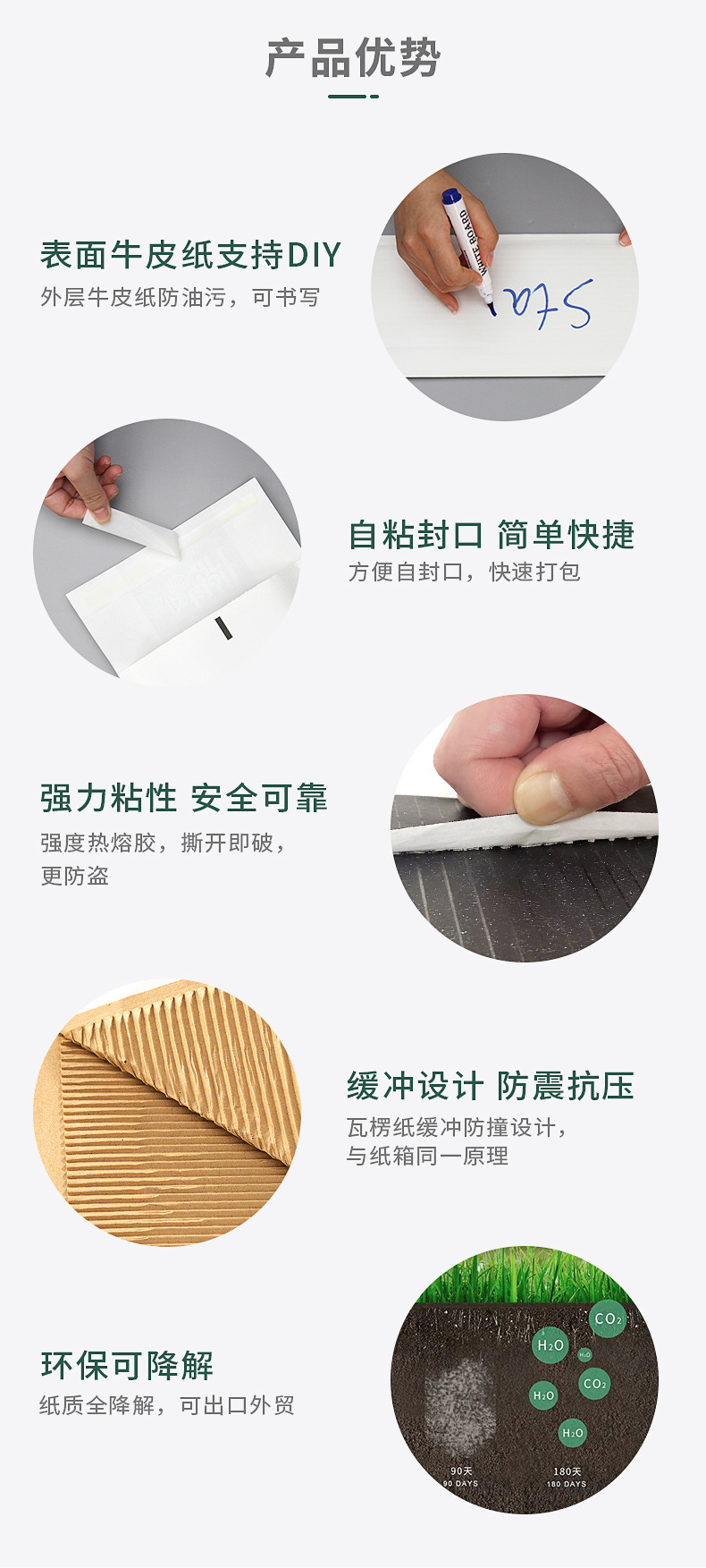 メーカー直販クラフト紙のハニカム紙袋防震抗投速達袋紙環境保護服装アクセサリー包装袋