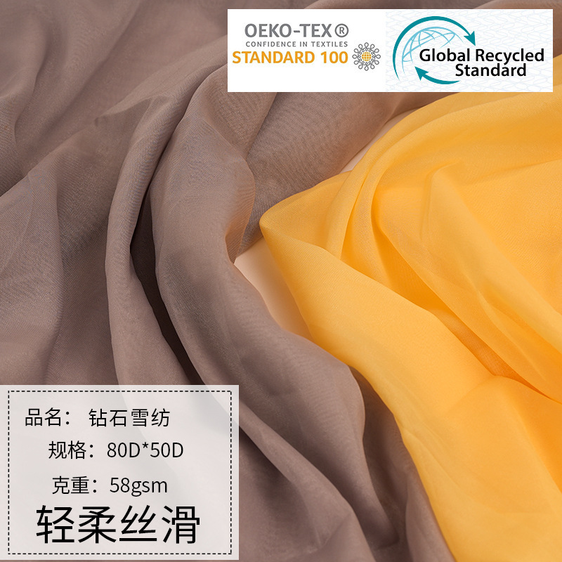 現物は75d二重四面弾生地ポリエステル雪紡織シャツ漢服ワンピース服内張り生地を供給している
