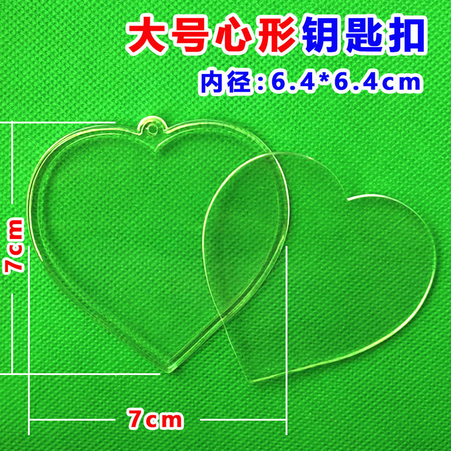 大号心形钥匙扣大圆形透明装照片空壳相框diy空白打印亚克力挂件