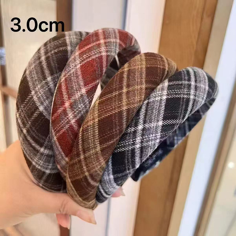 韓国のレトロな格子のカチューシャの女性の秋冬の百合の気質は髪を抑えて外に出ます。