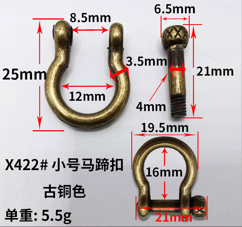 ブロンズ馬蹄バックル diy バッグハードウェア手作り革アクセサリーねじ可能な亜鉛合金弓型馬蹄バックル