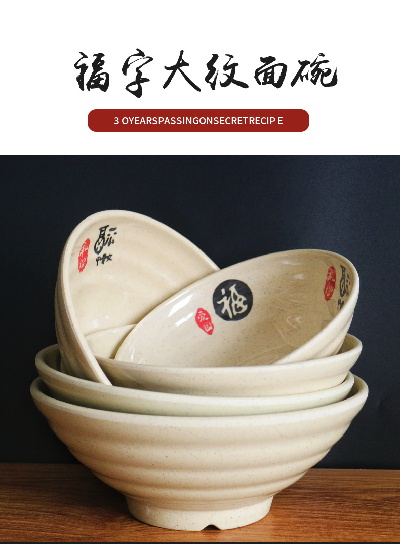 メラミンの麺の碗は転びに耐えて磁器の食器の大きい碗のスープの碗の業務用の麻辣热の碗のプラスチックの碗の麺館の専用の碗の卸売りに似合います。