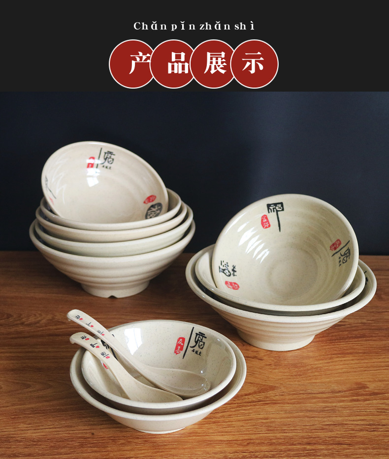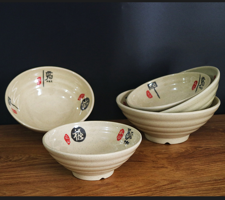 メラミンの闘笠碗の日本式の味の千ラーメンの碗の食器の業務用の麻辣热碗の大きいサイズの碗のスープの粉のナットの粉の碗