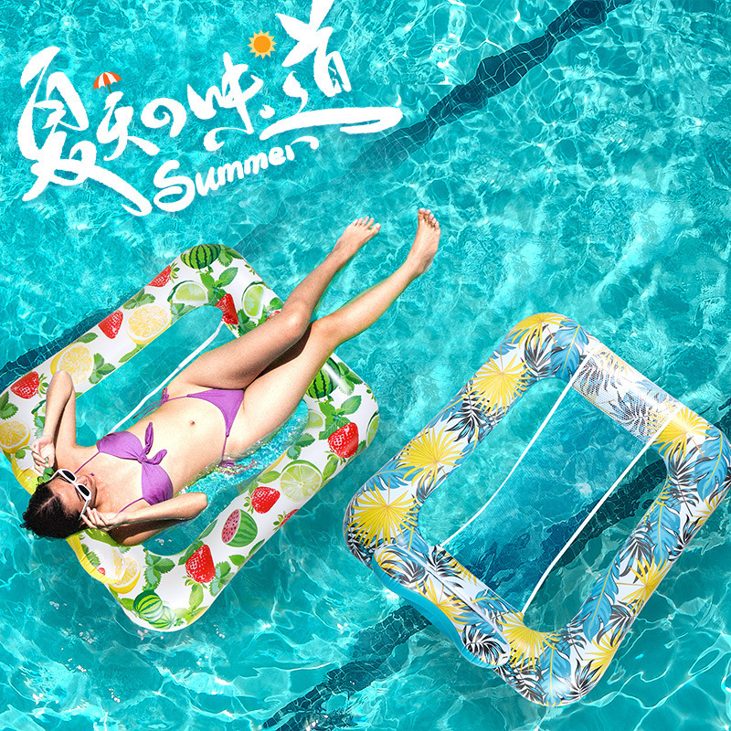 跨境三管四管水果充气浮排新款 可折叠网布水上吊床 泳池水上躺椅