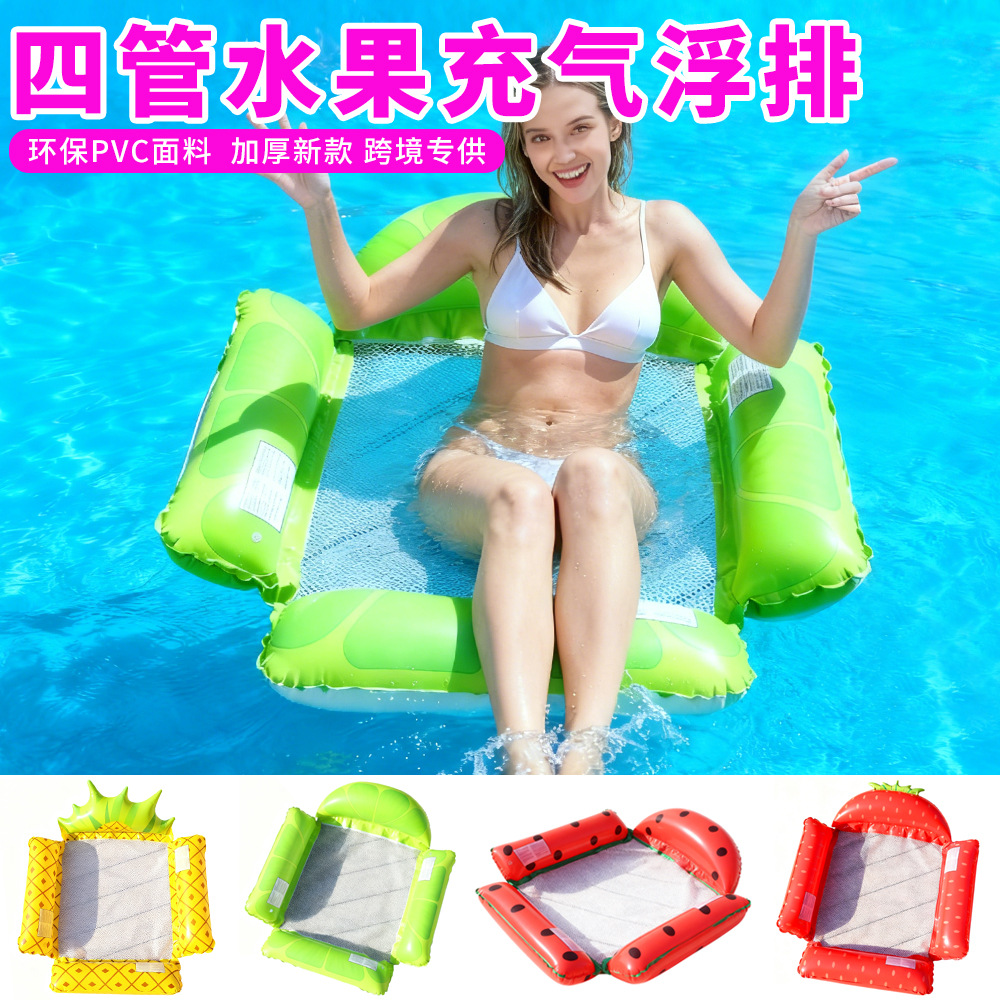 跨境四管水果充气浮排 新款 可充气折叠夹网水上躺椅浮床泳池玩具