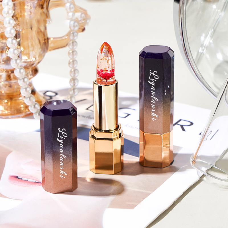 花びら生花口紅透明ゼリー変色金箔温変リップクリームはカップをつけないで色が落ちない潤い保湿スポット
