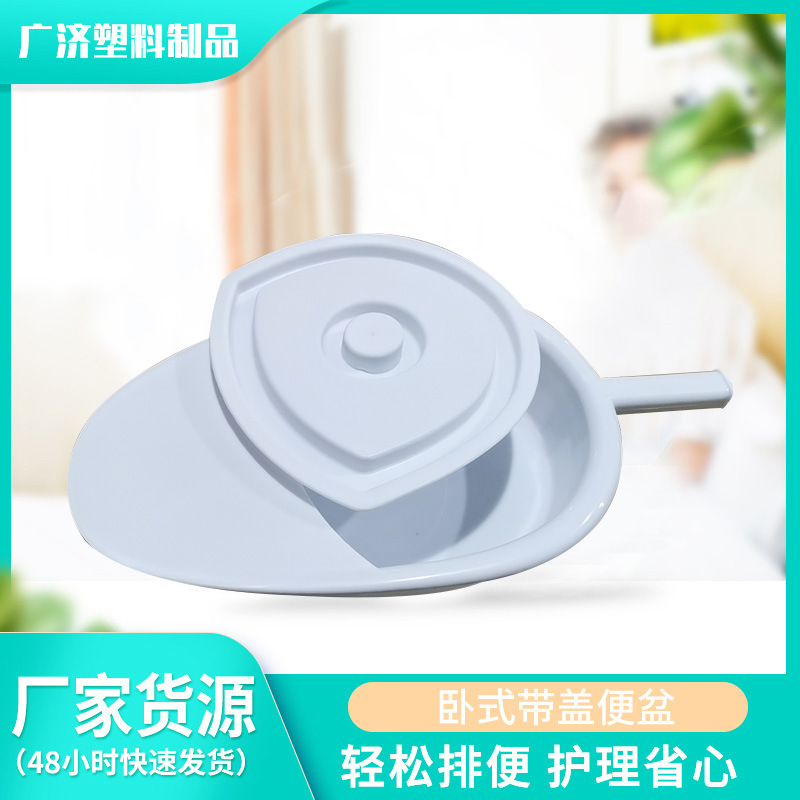 卧式带盖白色塑料便盆 便捷带柄病人老人便盆 加厚光滑鸭嘴式便盆