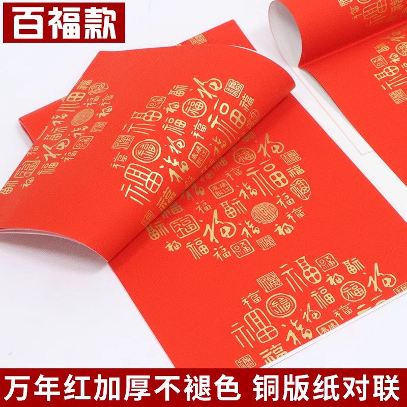 瓦当紅銅版紙対聯紙空白手書き紅紙万年紅斗方福字新年春節書春聯紙