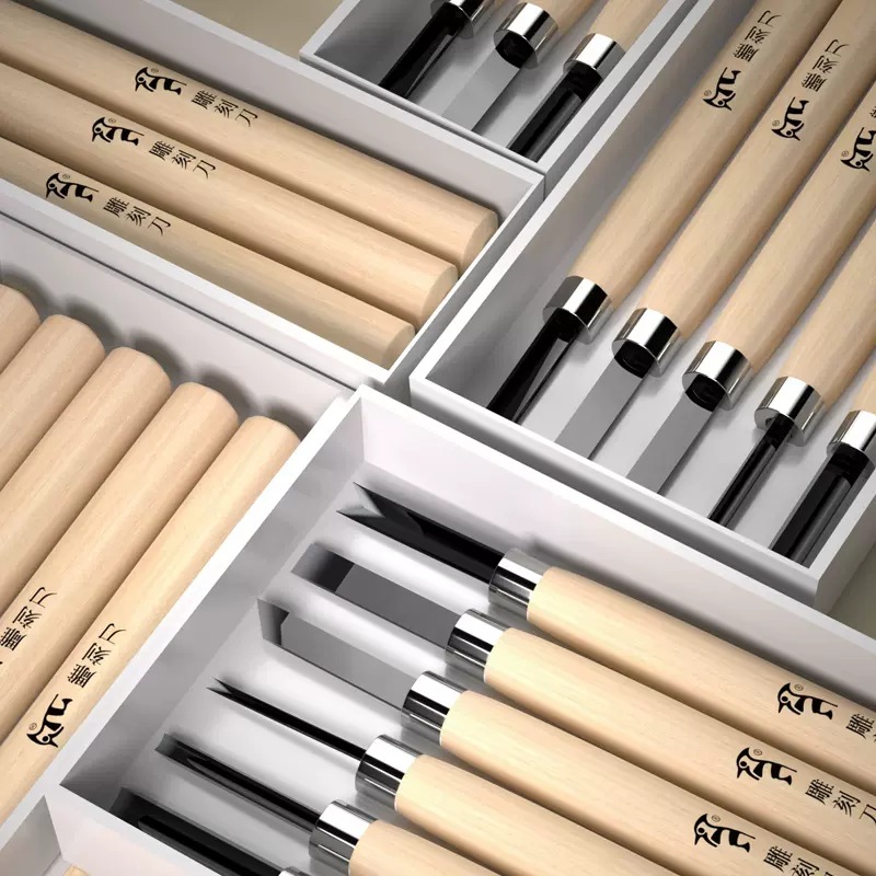 キツツキ木彫りナイフツールセット画材無垢材印鑑彫刻シール版画彫刻ナイフ木工彫刻ナイフ