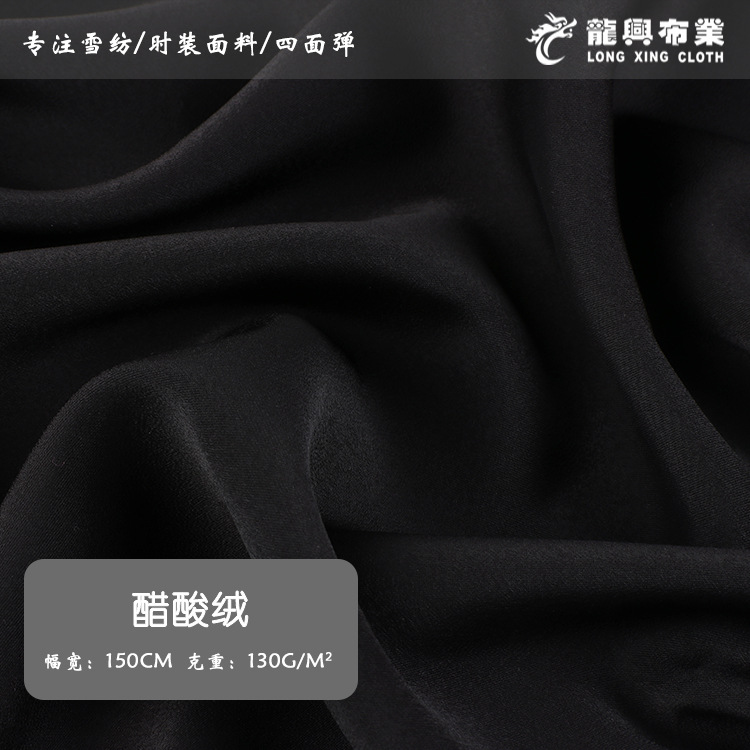 純黒色酢酸パイル生地の光沢感が滑らかで、水晶シルクのような滑らかなスカートズボン生地