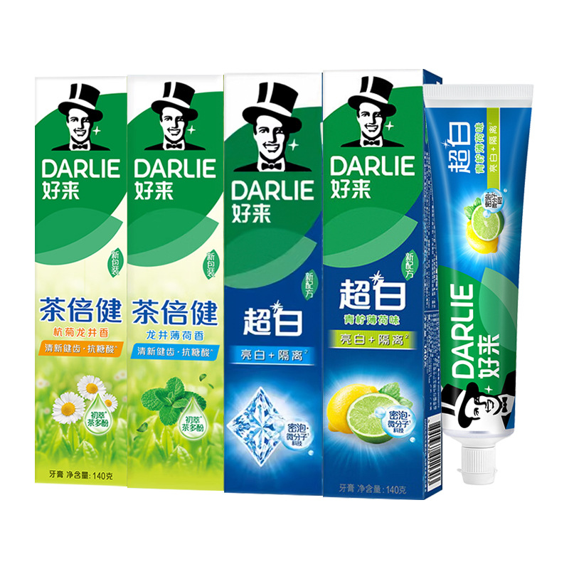 好来/黒人歯磨き粉超白茶倍健龍井緑茶竹炭深潔塩白歯磨き粉140g純正品卸売り
