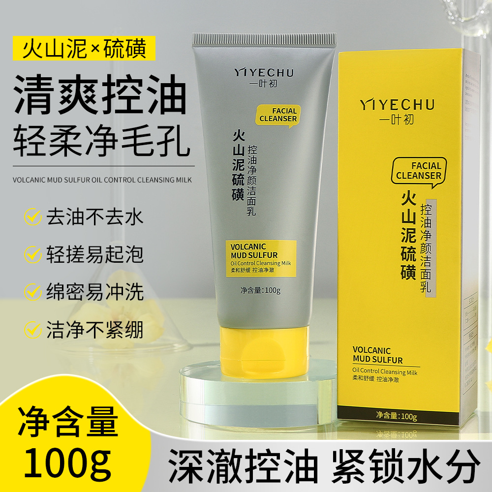 Yiyechu 火山泥硫黄オイルコントロールクレンジングミルク保湿保湿オイルコントロールクレンジング硫黄洗顔料