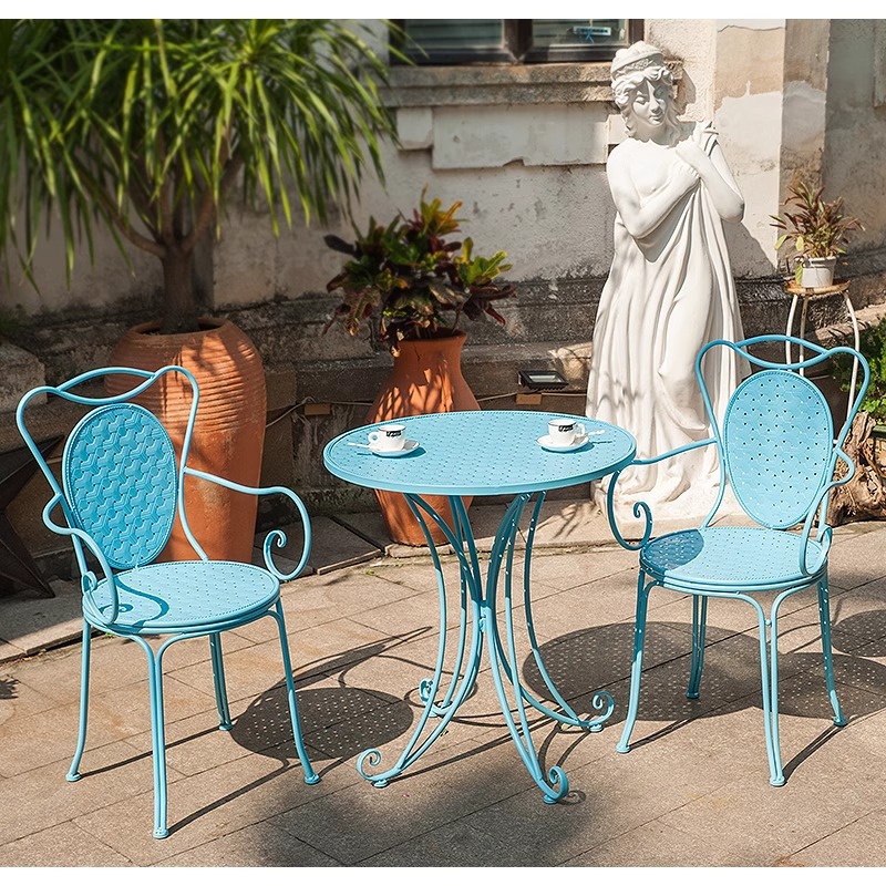 ベランダのテーブルと椅子の室外三点セットの鉄芸の室外のテーブルと椅子の庭のレジャーのテーブルと椅子の喫茶店の室外のカラーのテーブルと椅子
