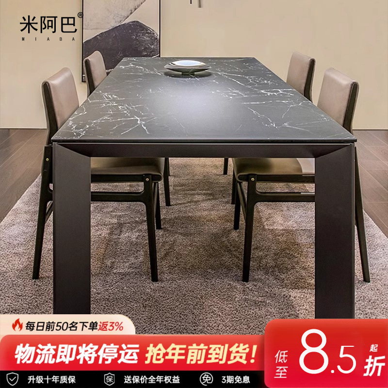 Delifon ブラックステンレススチールスレートダイニングテーブルブラックウォリアーイタリアのミニマリストライトラグジュアリーモダンダイニングテーブルハイエンドアイランドテーブル