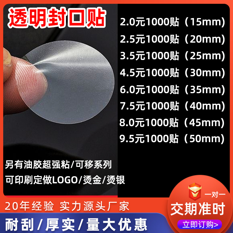現物円形透明シールPVCカスタムロゴ防水強貼り包装はステッカーラベルを取り除くことができる
