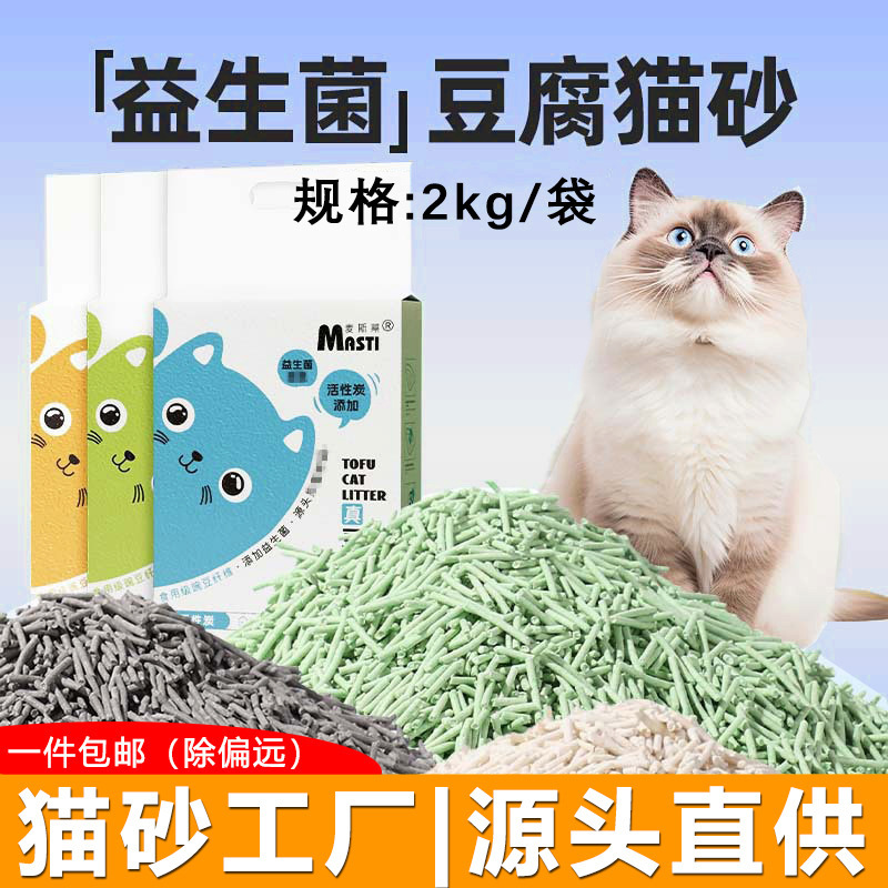植物豆腐猫砂2kg益生菌除臭猫砂4斤可冲厕所吸水低尘猫舍宠物店用