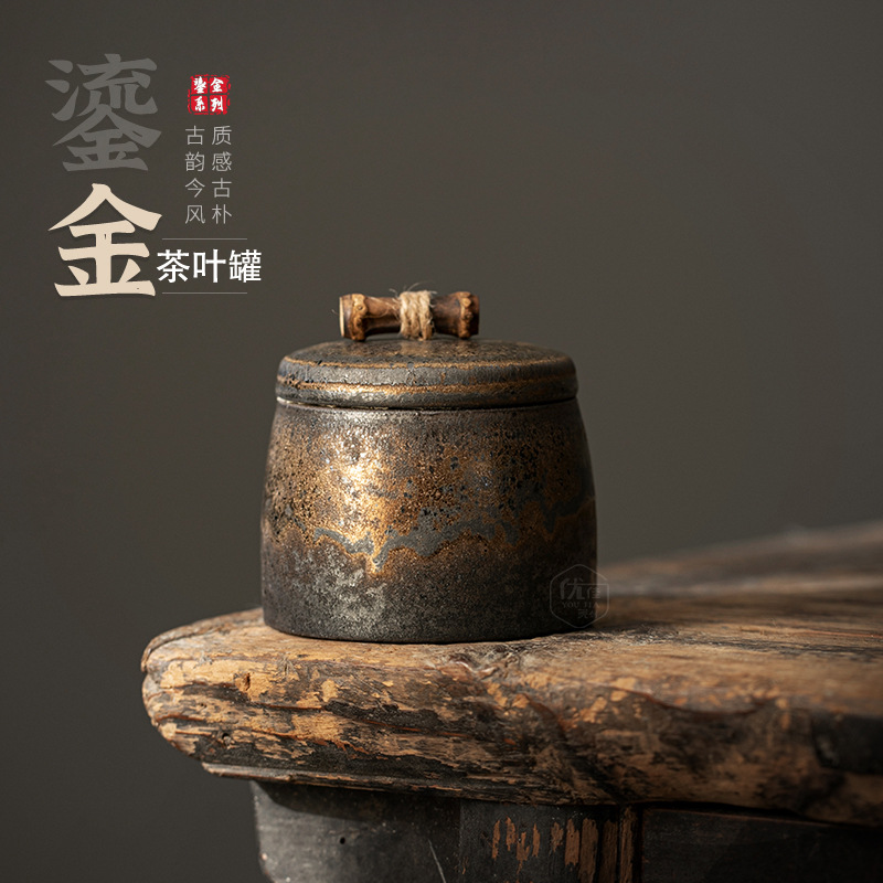 粗陶鎏金茶叶罐陶瓷家用防潮中式茶罐密封罐存茶罐高档绿茶储存罐
