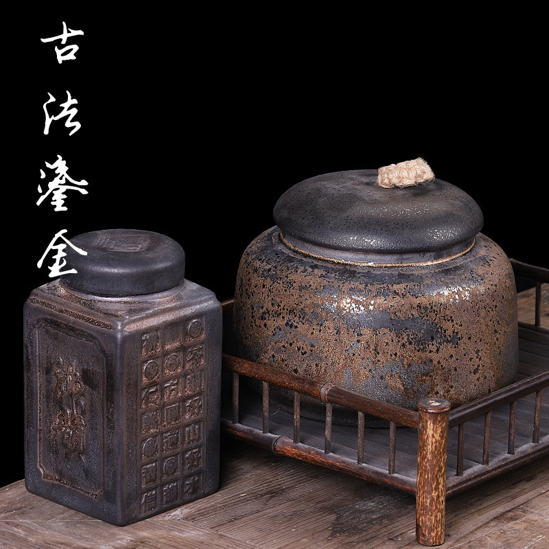 卸売り防湿粗陶茶葉缶金広口保存缶レトロ創意密封プーアル茶餅保存缶