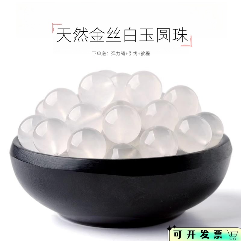 天然金糸白玉氷種玉髄散珠diy手作り玉珠数珠水晶アクセサリー玉配珠材料