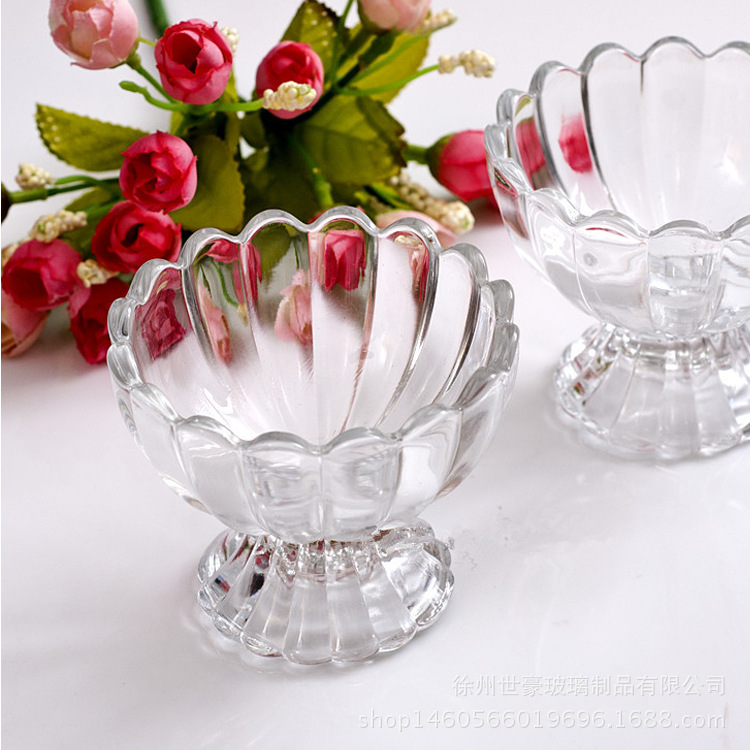 新しいロータスアイスクリームカップいちごクリーム塔ベース透明ガラス瓶サラダカップ花茶のガラス缶