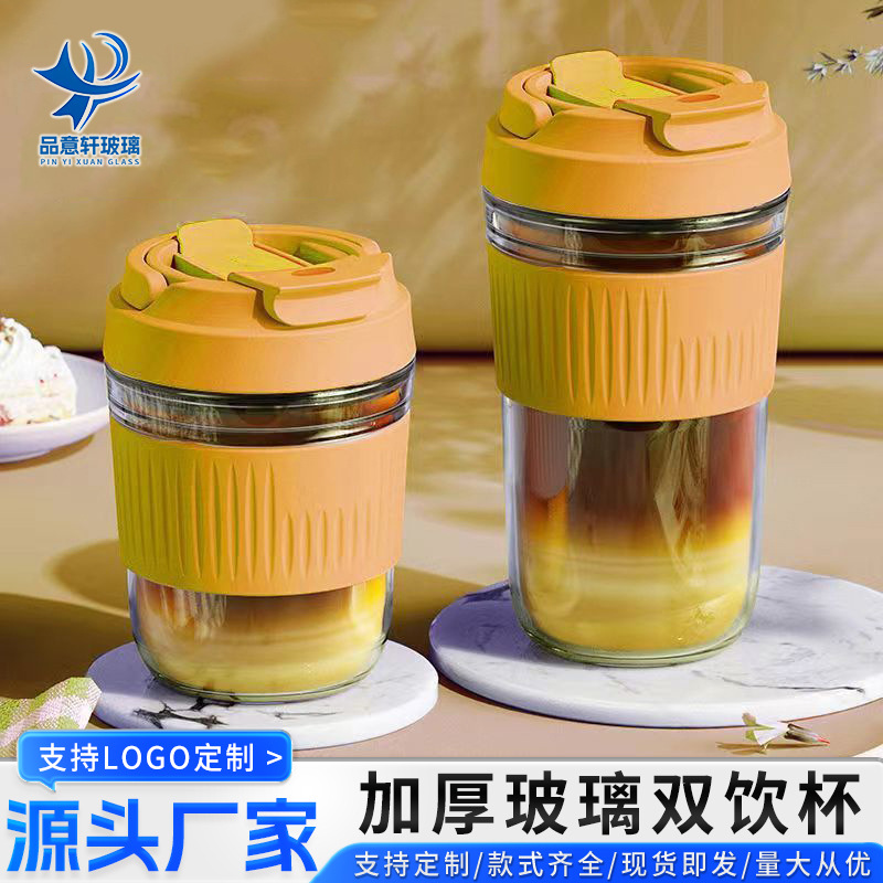 卸売 新型ガラス製ウォーターカップ ダブルドリンクカップ おしゃれなウォーターカップ イベント用プチギフト 学生用ストロー付き 高品質コーヒーカップ