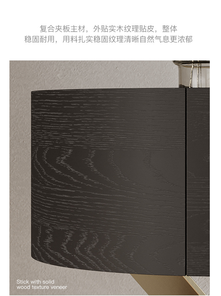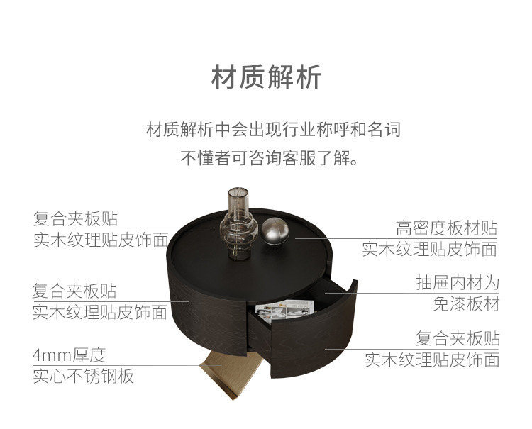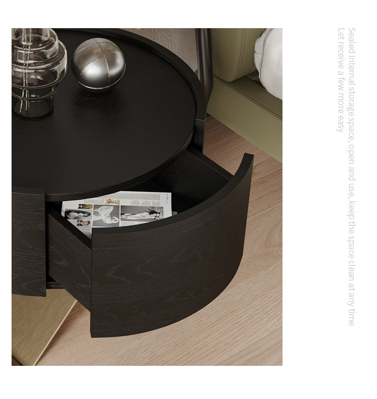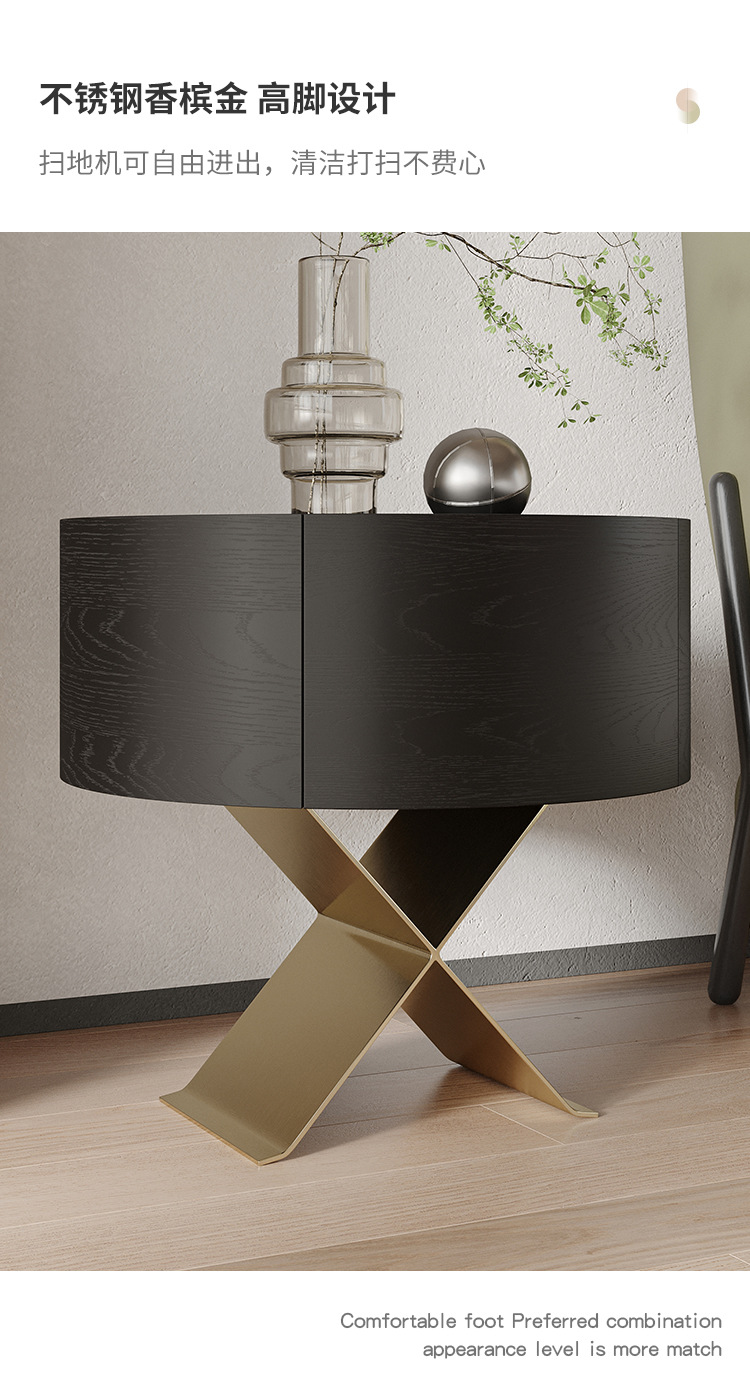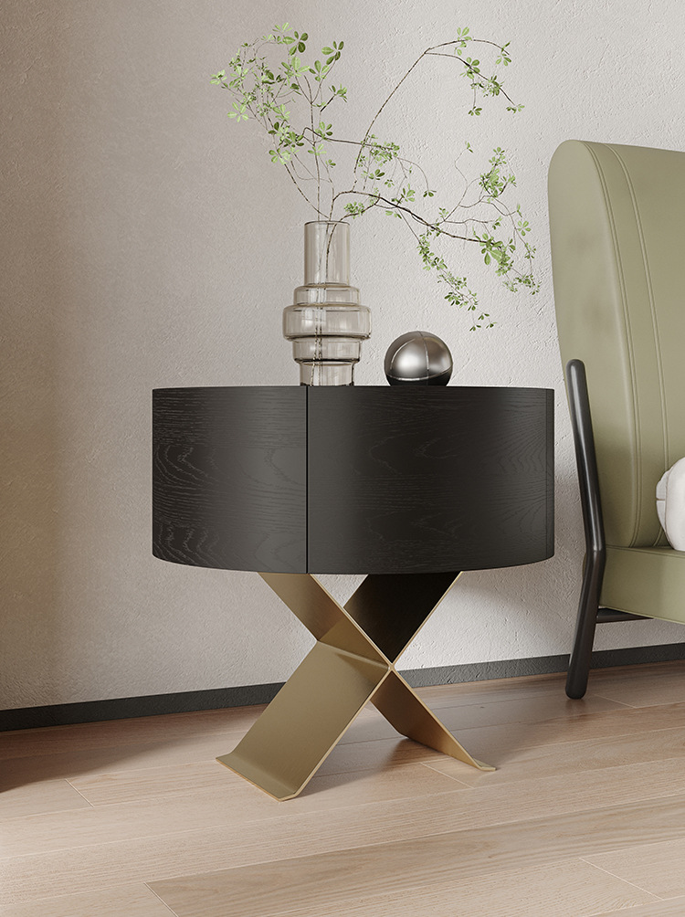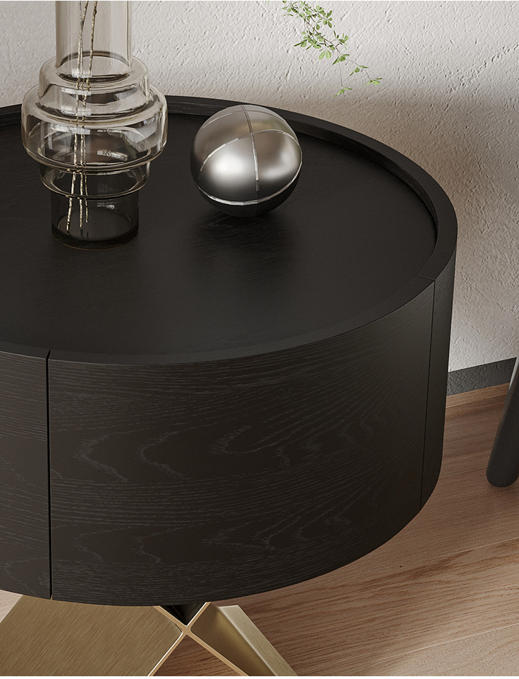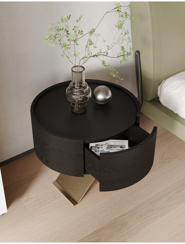 イタリアのミニマリストのハイエンドのステンレス鋼のベッドサイドテーブルデザイナーチャイムキャビネットシンプルなベッドルームブラックオークベッドサイドテーブルシンプル