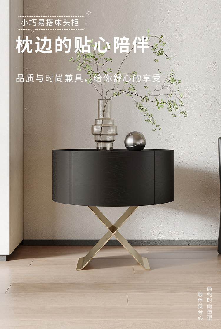 イタリアのミニマリスト無垢材ベッドサイドテーブルクルミ色の寝室サイドキャビネットシンプルなベッドサイド収納キャビネット40センチメートルラウンド小さなアパート