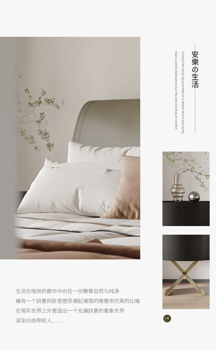 イタリアンミニマリストオーバルベッドサイドテーブル、無垢材塗装ベッドサイドテーブル、シンプルなクリームスタイルの寝室デザイナーズ円筒形キャビネット