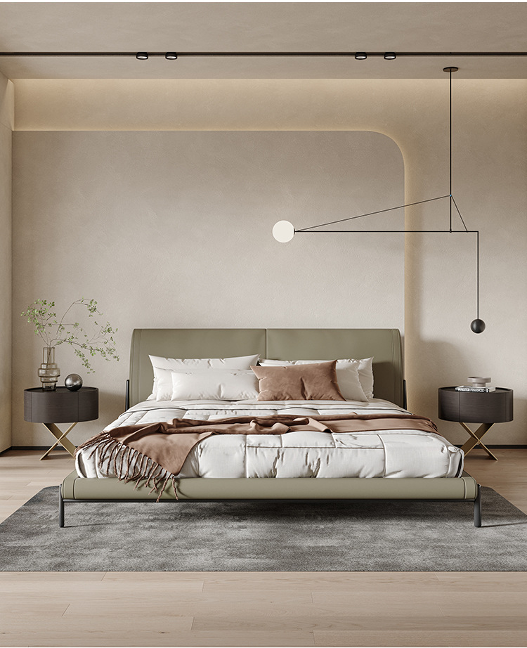 イタリア式の極めて簡単なハイエンドの木のベッドの頭の棚のサドルの皮のベッドのサイドの棚のデザイナーのアイデアの広東仏山の寝室の斗の棚