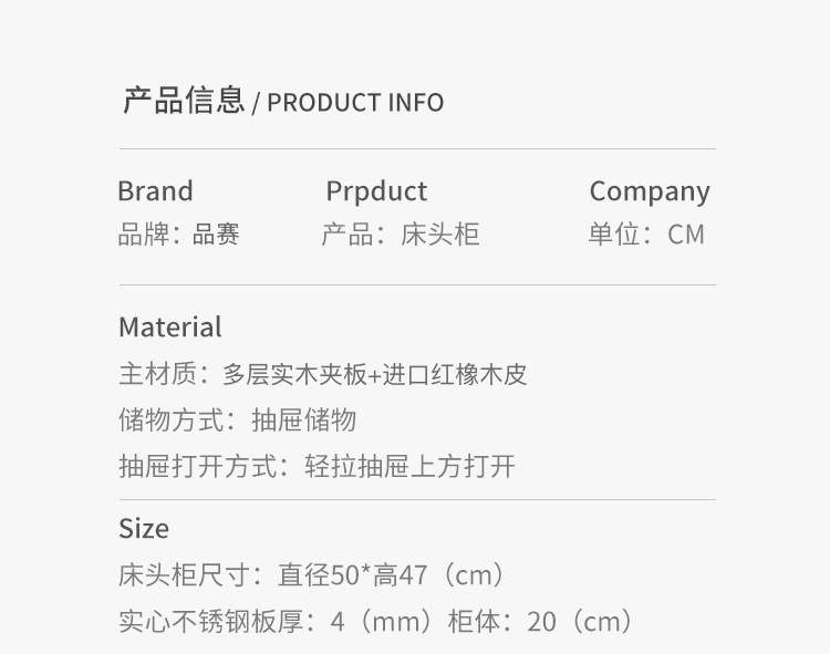 サイズ ベッドサイドテーブル【50*50*47cm】