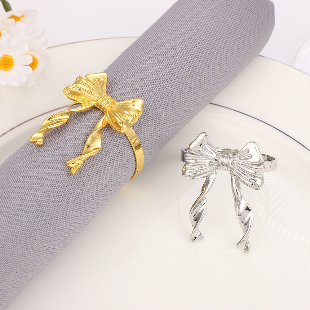 新款创意金色蝴蝶结餐巾环 酒店餐厅餐具摆台装饰金属餐巾扣批发