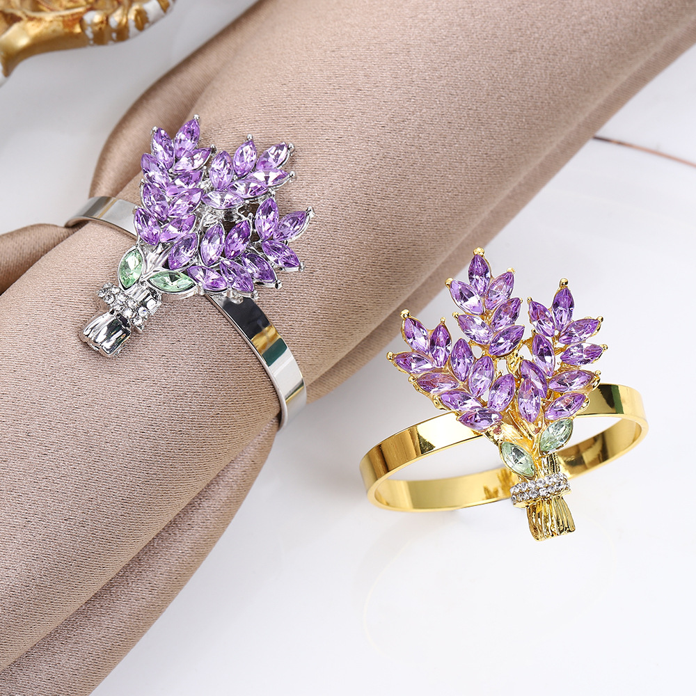 锌合金紫色薰衣草餐巾环酒店摆台电镀轻奢镂空餐巾扣批发餐具装饰